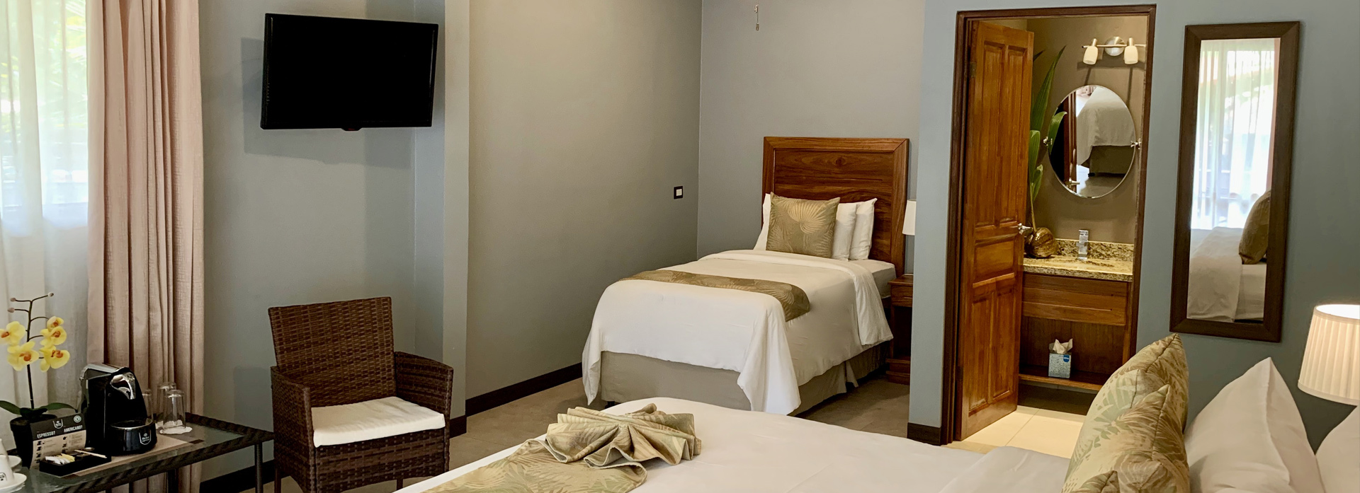 Premium Rooms are beautiful, spacious and recently remodeled bedrooms for couples and also families. They are equipped with AC, hair dryer, hot water, refrigerator, safe, Smart TV and Wifi.